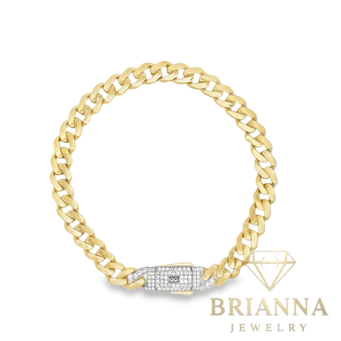 Crafted in Tuscany, Italy, this exquisite 14K yellow gold Cuban Monaci bracelet features a hollow design with a CZ stone lock.