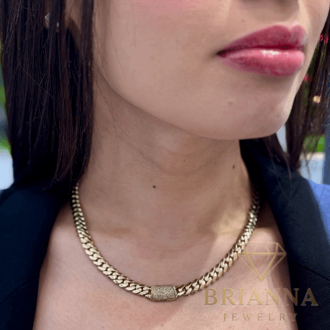 Handcrafted in Tuscany, Italy, this 14K yellow gold Cuban choker features a solid chain design with a secure diamond lock clasp. Adorned with 0.75 CT, VS clarity diamonds, it offers timeless elegance.