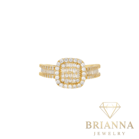 A striking symbol of elegance, this exquisite ring is crafted from 14k yellow gold. Exceptional in its quality, it boasts a generous portion of the finest Cubic Zirconia stones for an unparalleled shine.