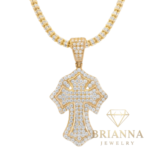 Crafted in authentic 14k yellow gold, this pendant features a cross design accented with cubic zirconia. The 24-inch chain measures 3.3mm wide, with the pendant itself spanning 1.8 inches and weighing approximately 28 grams. Manufactured in New York, this piece includes a 1-year warranty. Trust the expertise of NYC’s premier jeweler: Brianna Jewelry DBA.