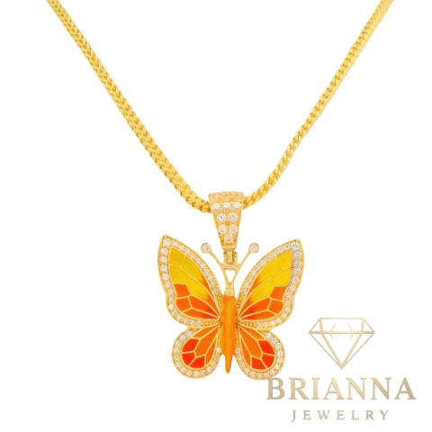 14K Butterfly (Orange) Pendant + Hollow Franco Chain 18” Inches – Brianna Jewelry
