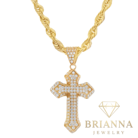 14k Cross CZ Pendant W/ Hollow Rope Chain (3.8MM – 22” Inches) – Brianna Jewelry
