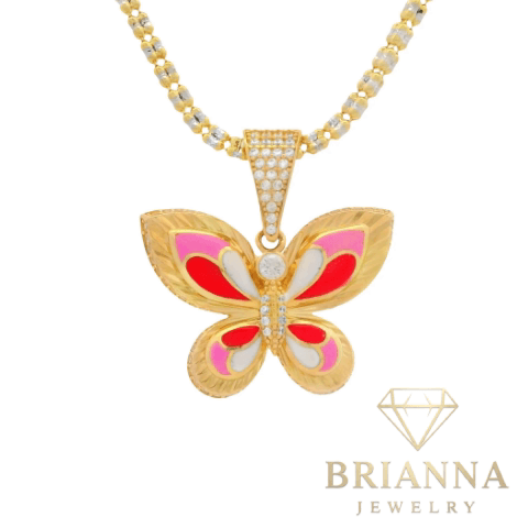 *NEW* 14k Yellow Gold Butterfly Pendant with Moon Ice Chain Set