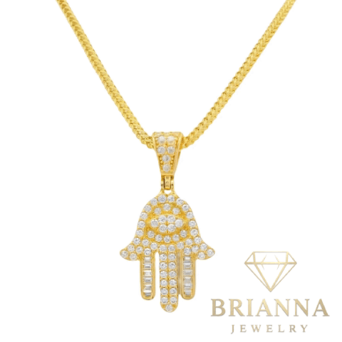 Crafted in Tuscany, Italy, this exquisite 14K yellow gold pendant and chain set features a Hamsa design adorned with cubic zirconia. The Franco chain measures 18 inches with a 1.5mm width, combining elegance with enduring quality. All pieces are meticulously handcrafted, backed by a 1-year warranty. Shop with assurance from Pennsylvania’s premier jeweler.