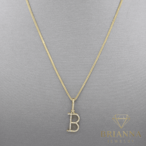 14k Initial (B) Diamond 💎 Pendant W/ Hollow Franco Chain – Brianna Jewelry