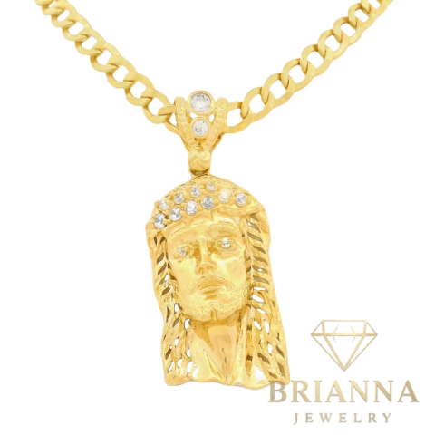 14K Jesus CZ Face Pendant W/ Hollow Cuban Curb Chain (4.5MM – 20” Inch – Brianna Jewelry