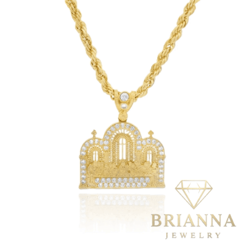 14K Chain and Pendant™ – this timeless piece is part of an enduring collection, crafted for lasting elegance. Made with authentic 14k Yellow Gold, it features a 3.5mm width chain measuring 24 inches, paired with a 1.2-inch Last Supper pendant adorned with Cubic Zirconia. Weighing approximately 12.7 grams, each piece is meticulously handcrafted in Tuscany, Italy. Backed by a 1-year warranty from @Brianna Jewelry and the trusted expertise of Brianna Jewelry in New York.