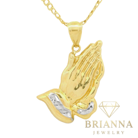 14K Praying Hands Pendant W/ Solid Cuban Chain (3MM – 24” Inches) – Brianna Jewelry
