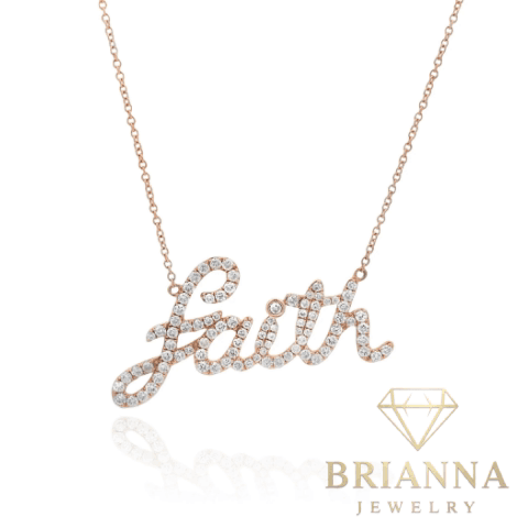 14k Rose Gold Faith VS Diamond ๐ Necklace โ Brianna Jewelry