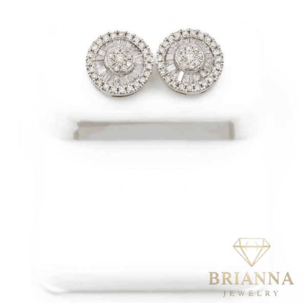14k Round Baguette Diamond Earrings 💎 – Brianna Jewelry