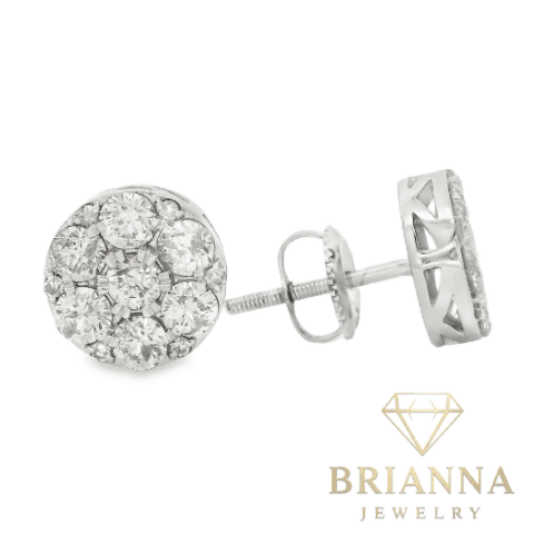 NEW* 14k White Gold Round Diamond Earrings💎 – crafted in pure 14k white gold with VS clarity diamonds totaling 1.70 carats and a 9.2mm width. Each pair is meticulously manufactured in New York and backed by a 1-year warranty. Shop with assurance from NYC’s premier jeweler, Brianna.