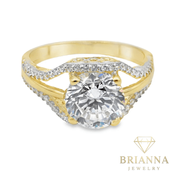 Designer 14K yellow gold infinity engagement ring, meticulously handcrafted in New York City. Crafted from genuine 14K yellow gold with cubic zirconia accents, this piece features exceptional quality and a size #8 band, with custom sizing available to ensure the perfect fit. Backed by a 1-year warranty, purchase with assurance from New York’s premier jeweler.