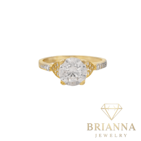 Each facet of this magnificent ring is adorned with a vibrant 14K yellow gold finish, polished to perfection to showcase its radiant beauty. A subtle sheen adds depth and luxury to this captivating design.