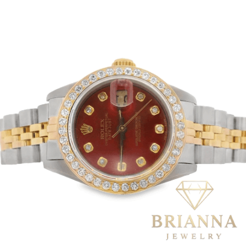 Women Rolex Watch Red Dial With 💎 Diamonds and Diamond Bezel 26MM – Brianna Jewelry